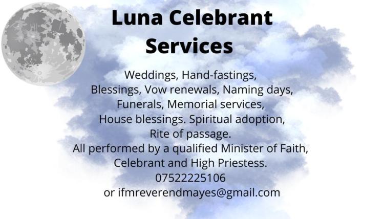 Luna Celebrant Services is run by Shelley, an ordained, interfaith minister and High Priestess, who has many years experience of handfastings, naming days and blessings.